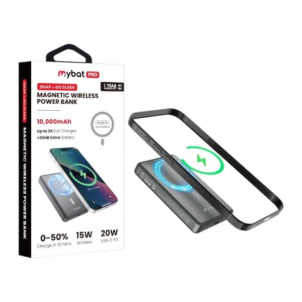MYBAT 10,000mAH SNAP+GO SLEEK MAGNETIC WIRELESS POWER BANK – RPBBAT116 – GREY TITANIUM