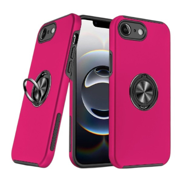 iPhone 16e/17e – Oil Painted Magnetic Ring Stand Hybrid Case – Hot Pink
