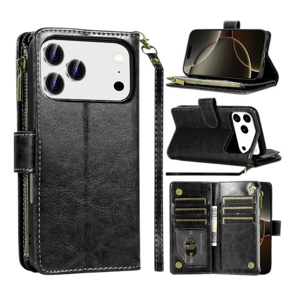 iPhone 17 Pro Max – Luxury Wallet Case With Zipper (Black)