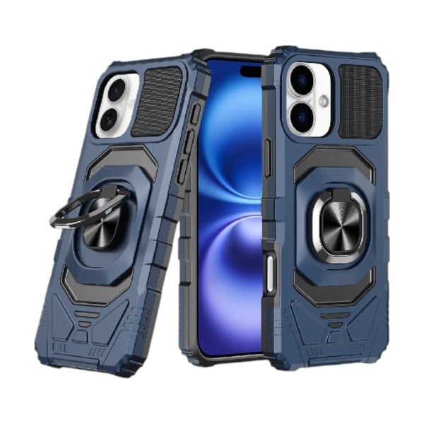 iPhone 17 – Robotic Hybrid with Magnetic Ring Stand Case Cover – Dark Blue